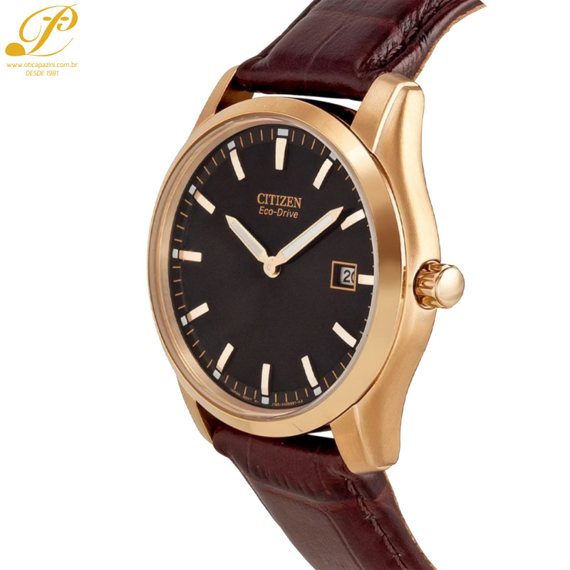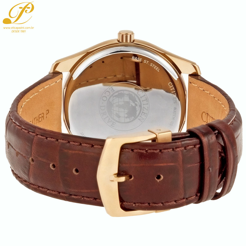 Um relógio como este demonstra seriedade e profissionalismo. Fabricado em aço inoxidável com acabamento em tom de ouro rosé, mostrador preto, ponteiros luminescentes, indicador de data e sofisticada pulseira de couro marrom. Equipado com a tecnologia Eco-Drive – alimentada por luz, qualquer luz. Nunca precisa de bateria. Calibre J165.