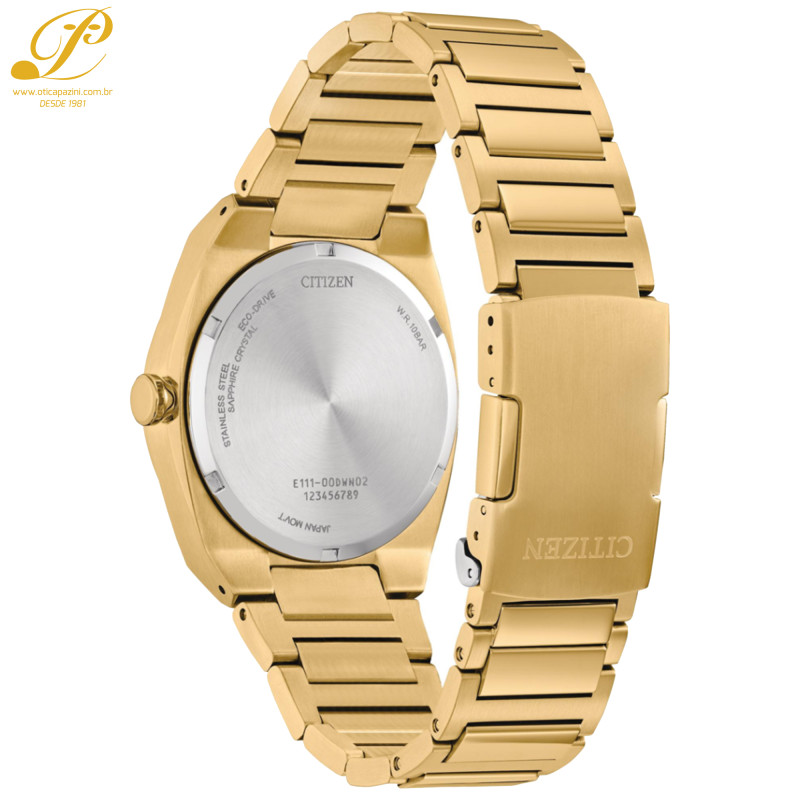 Movido pela tecnologia Eco-Drive da Citizen — alimentado por luz, qualquer luz, e que dispensa o uso de bateria.