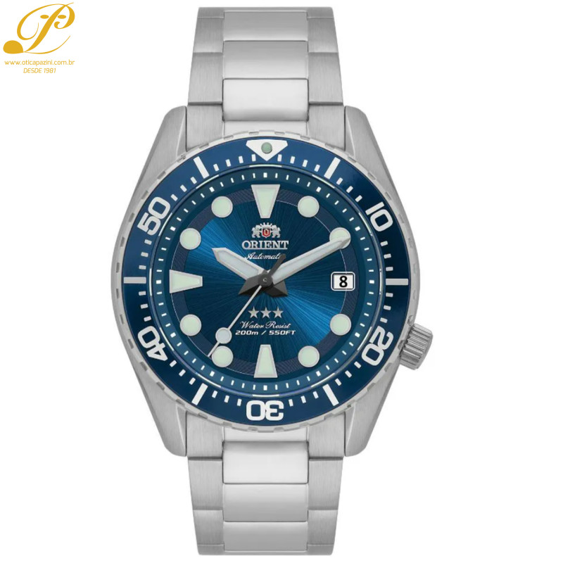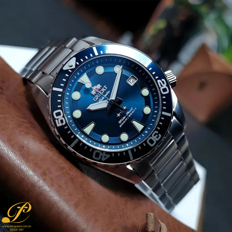 O Relógio Orient Sumô Sport Sea YN6SS011 D1SX Automático é um relógio diver projetado para enfrentar ambientes extremos com sofisticação e desempenho. Com design robusto e esportivo, é a escolha ideal tanto para o ambiente de trabalho quanto para aventuras no fim de semana, combinando praticidade e estilo, A caixa de 42,6 mm em aço inoxidável oferece resistência e durabilidade, enquanto o mostrador azul Sunray traz um toque de elegância e profundidade, criando um contraste perfeito com os índices e ponteiros luminosos, que garantem alta visibilidade mesmo em condições de baixa luz.
